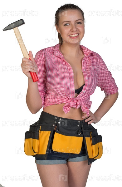 Женщина в инструментами и молотком