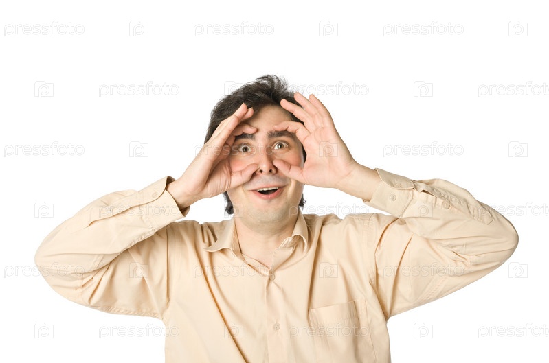 Мужчина смотрит на что-то