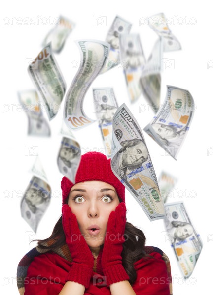 Женщина с падающими вокруг деньгами