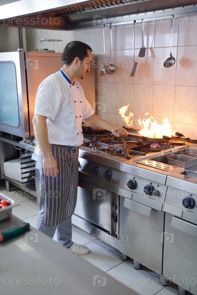 Шеф-повар готовит в кухне