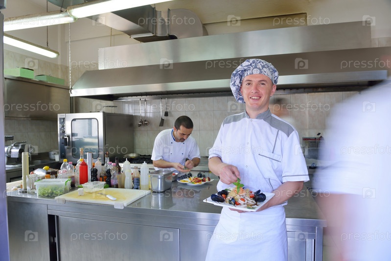 Шеф-повар готовит в кухне