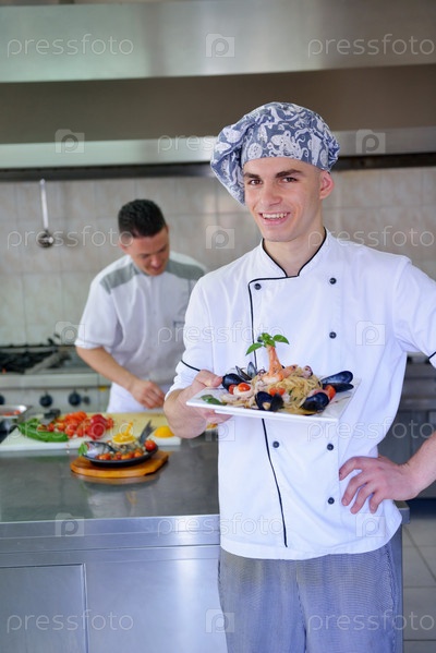 Шеф-повар готовит в кухне