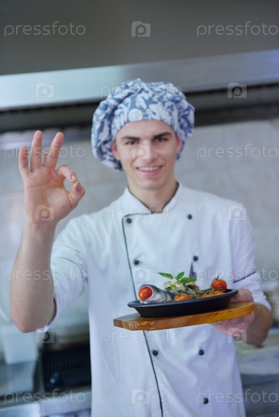 Шеф-повар готовит блюдо на кухне