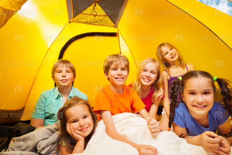 Группа детей в палатке