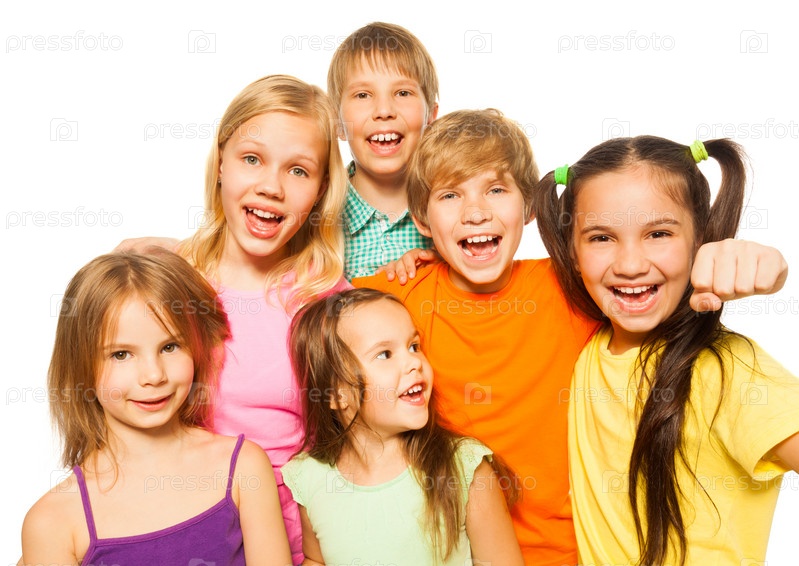 Группа детей на белом фоне