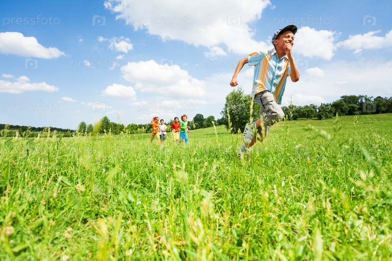Дети играют на летней поляне