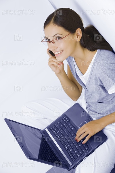 Молодая красивая женщина с ноутбуком