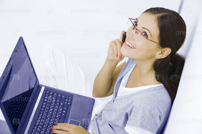Молодая красивая женщина с ноутбуком