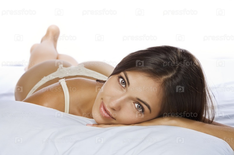 Молодая красивая женщина лежит в постели