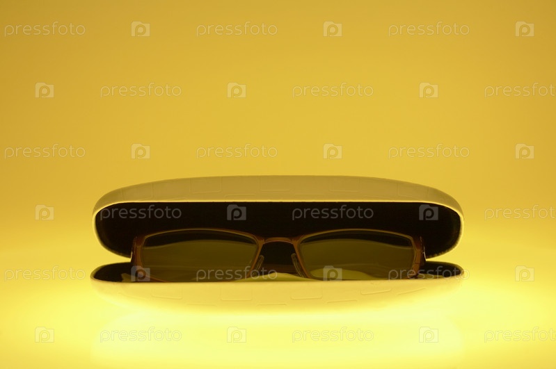 пара очков в клетке в желтом свете