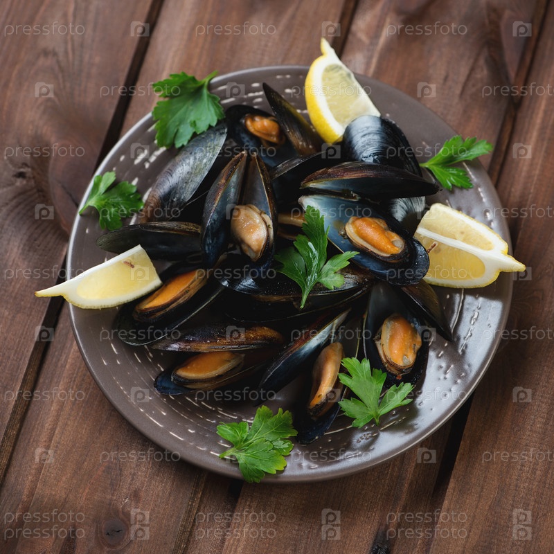 Мидии с лимоном и петрушкой