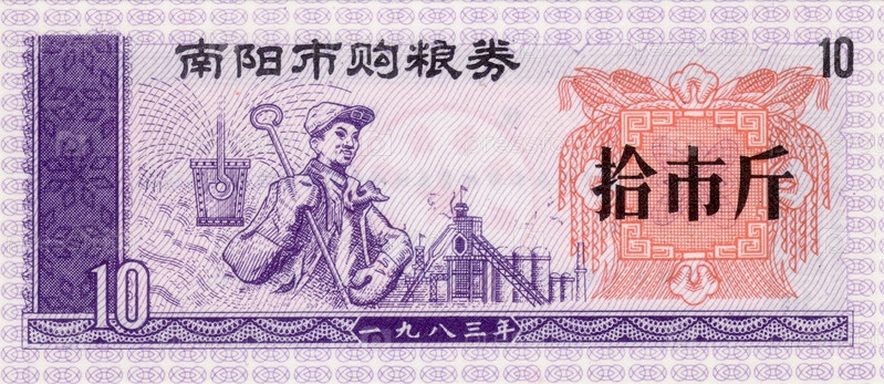 Китайский продовольственный купон, 1983 год, лицевая сторона