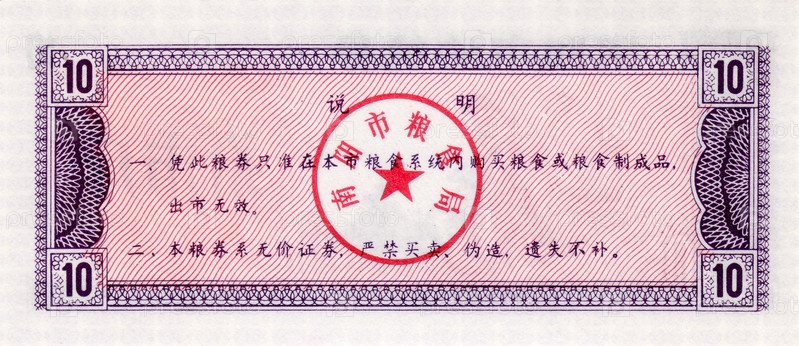 Китайский продовольственный купон, 1983 год, оборотная сторона