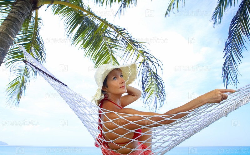 Женщина в гамаке на тропическом пляже