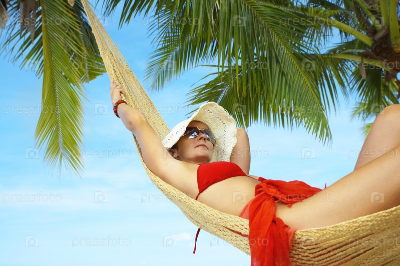 Женщина в гамаке на тропическом пляже