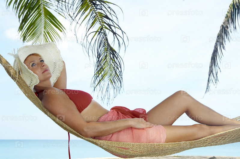 Женщина в гамаке на тропическом пляже
