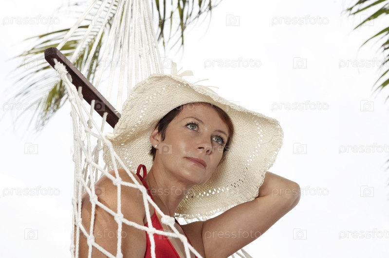 Женщина в гамаке на тропическом пляже