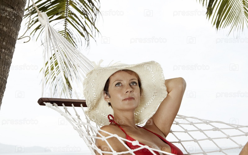 Женщина в гамаке на тропическом пляже