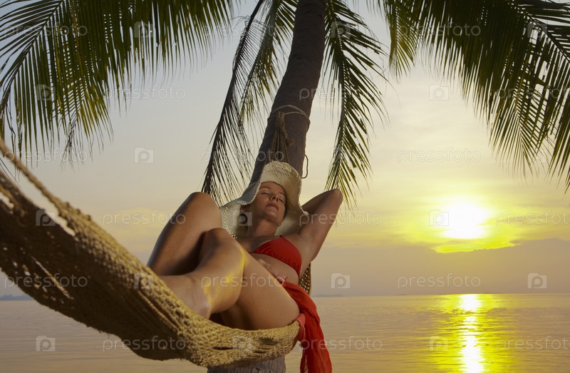 Женщина в гамаке на тропическом пляже