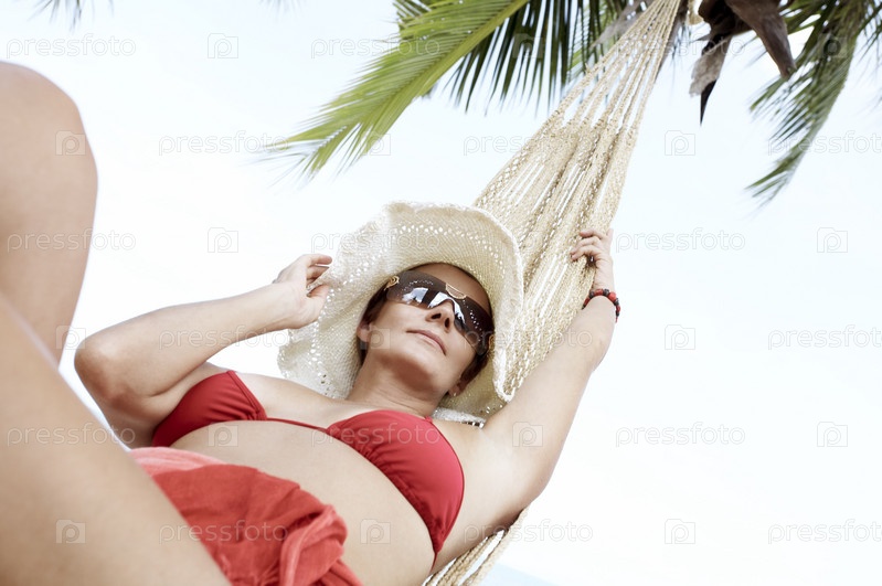 Женщина в гамаке на тропическом пляже