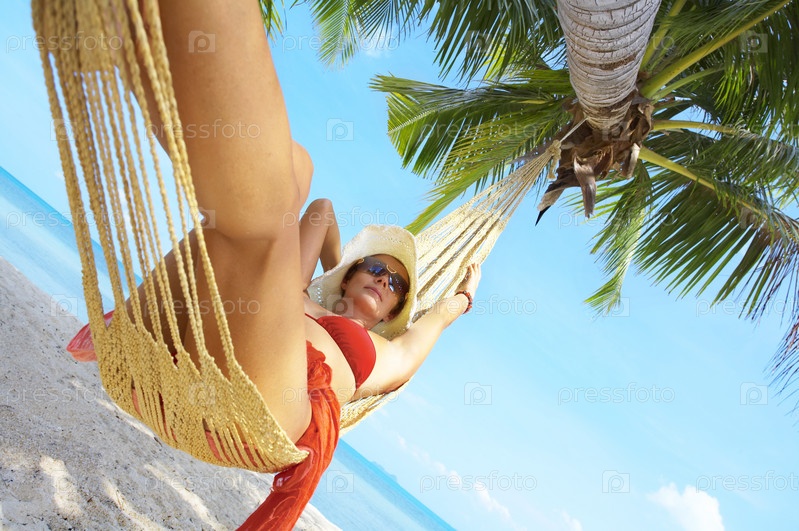 Женщина в гамаке на тропическом пляже
