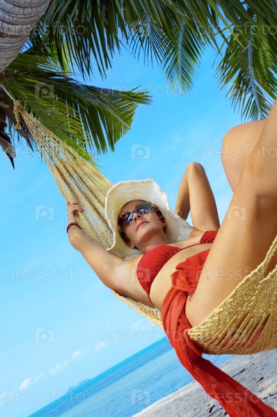 Женщина в гамаке на тропическом пляже
