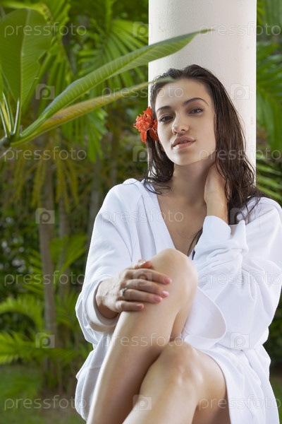 Молодая симпатичная женщина в халате