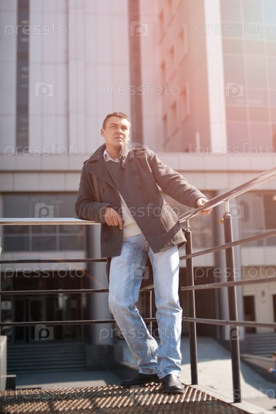 Портрет молодого мужчины на фоне офисного здания