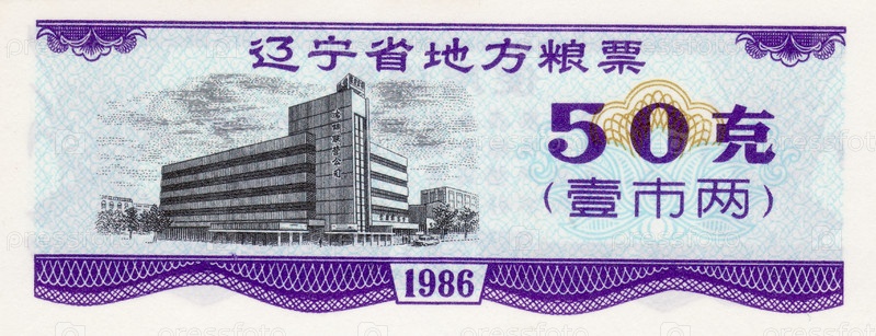 Банкнота, продовольственный купон, 50, 1986 год, лицевая сторона, Китай