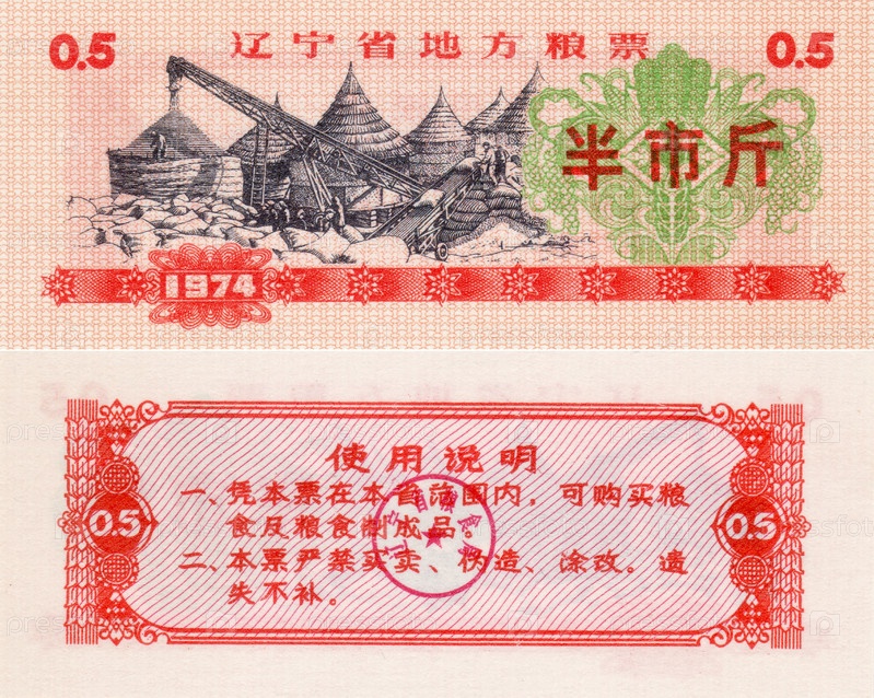 Банкнота, продовольственный купон. 0,5. 1974 год. Китай