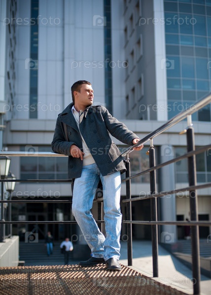 Портрет молодого мужчины на фоне офисного здания