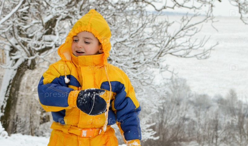 Мальчик играет в снегу