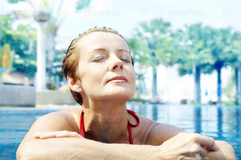 Красивая женщина отдыхает в бассейне