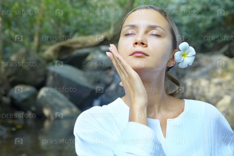 Свежая и красивая женщина на природе летом
