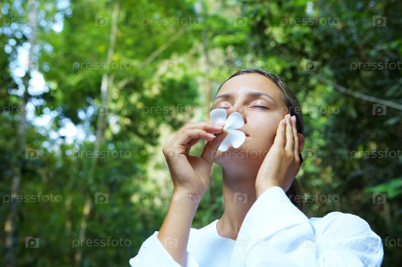 Свежая и красивая женщина на природе летом