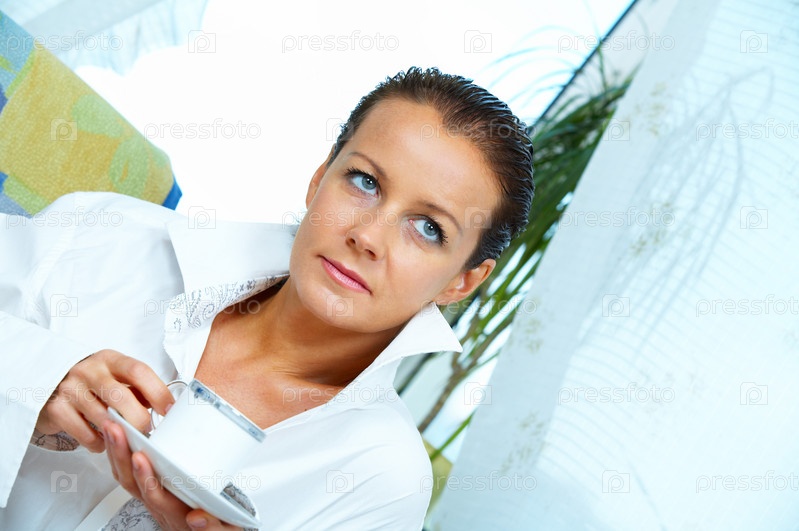 Счастливая привлекательная женщина в домашних условиях