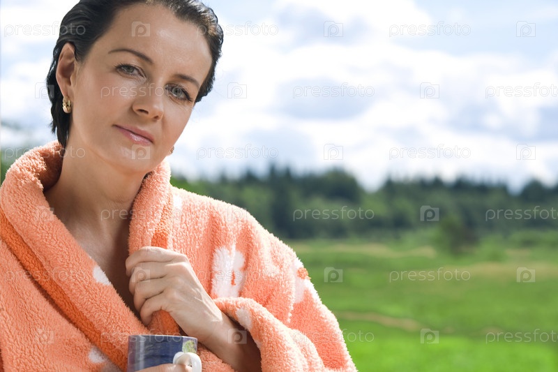 Красивая брюнетка в летних условиях
