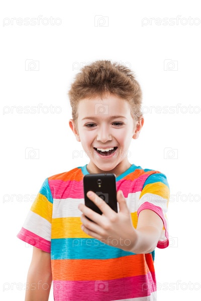 Мальчик фотографируется на мобильный телефон