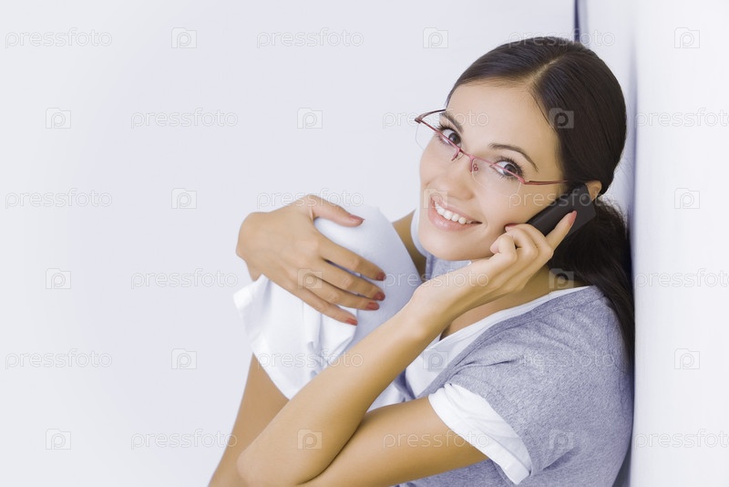 Молодая красивая женщина с мобильным телефоном