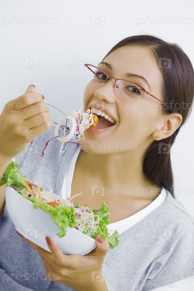 Женщина с овощным салатом
