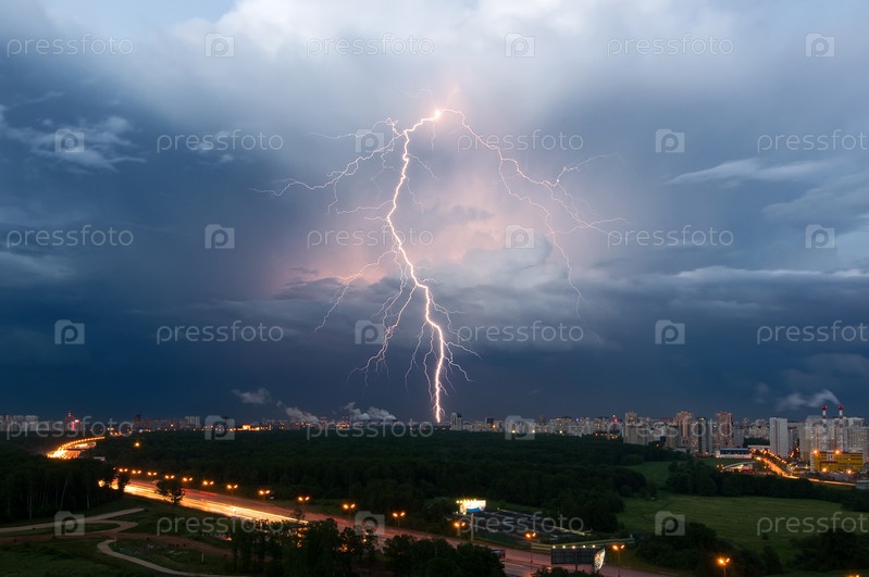 Летняя гроза с молнией над Москвой