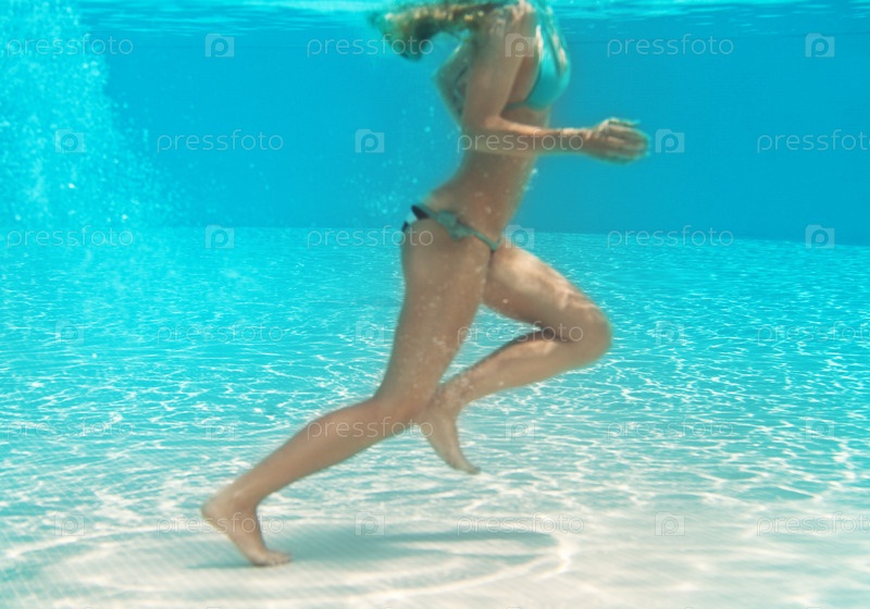 Спортивная женщина бежит под водой