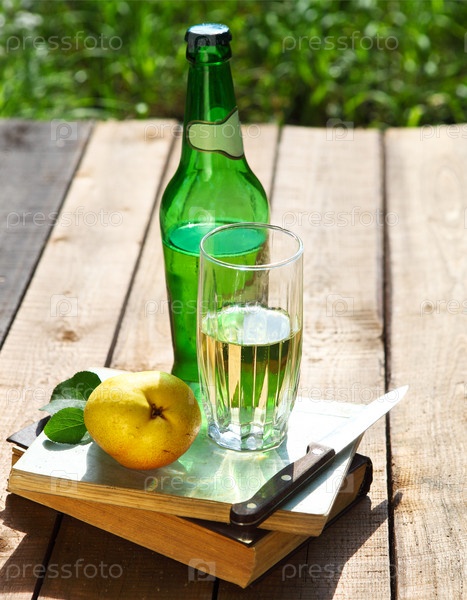 Грушевый сидр и груши в летнем саду