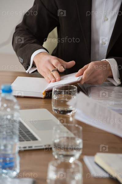 Мужские руки листают блокнот