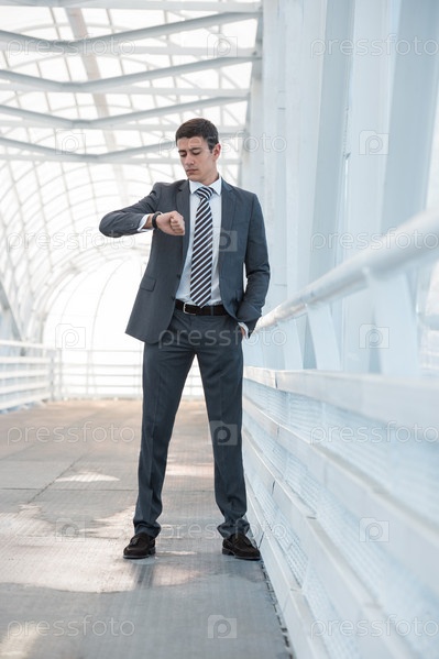 Бизнесмен смотрит на часы