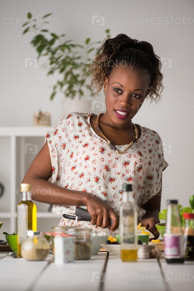 Женщина готовит салат