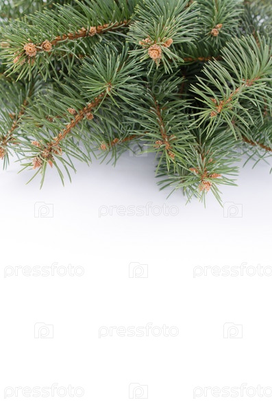 Ветки елки на белом фоне
