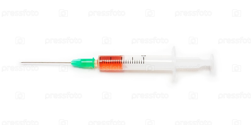 Шприц заполнен двумя миллилитрами красного жидкого вещества