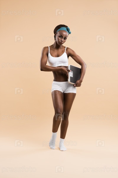 Сексуальнаяя женщина позирует с весами