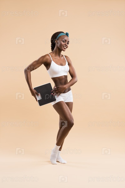 Сексуальнаяя женщина позирует с весами